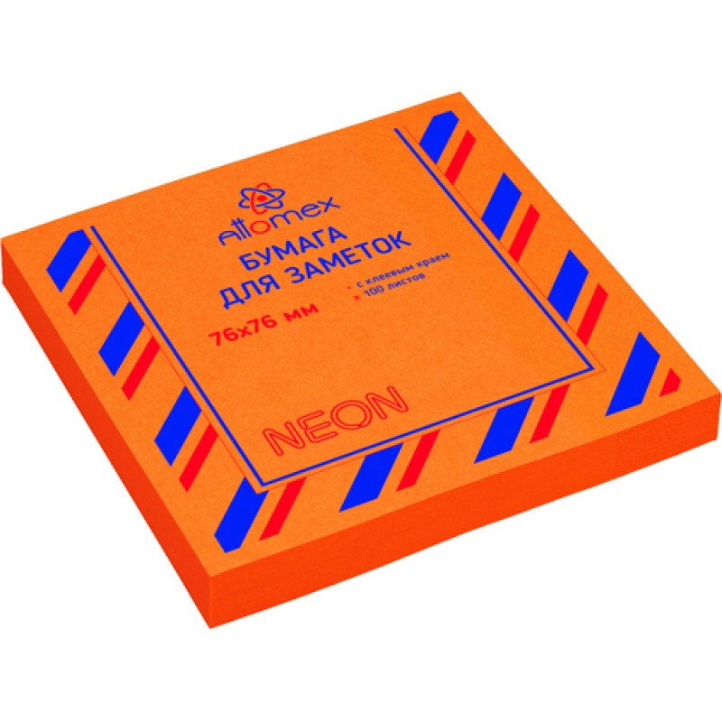 БУМАГА Д/ЗАМ.С ЛИП.КРАЕМ ATTOMEX 76х76 НЕОН ОРАНЖ. 100Л.
