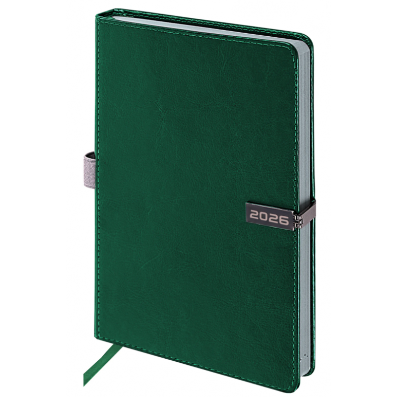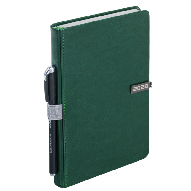 Ежедневник датированный 2026 А5 138x213 мм, BRAUBERG "Inspiration", под кожу, цветной срез, темно-зеленый