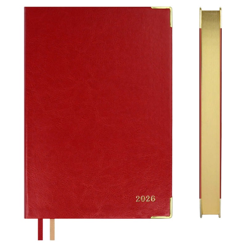 ЕЖЕДНЕВНИК 2026 А5 ESCALADA "ДУМАЙ КАК МИЛЛИАРДЕР" САРИФ КРАСНЫЙ С ЗОЛОТЫМ СРЕЗОМ,МЕТАЛЛ.УГОЛОК,КОЖ.ЗАМ.