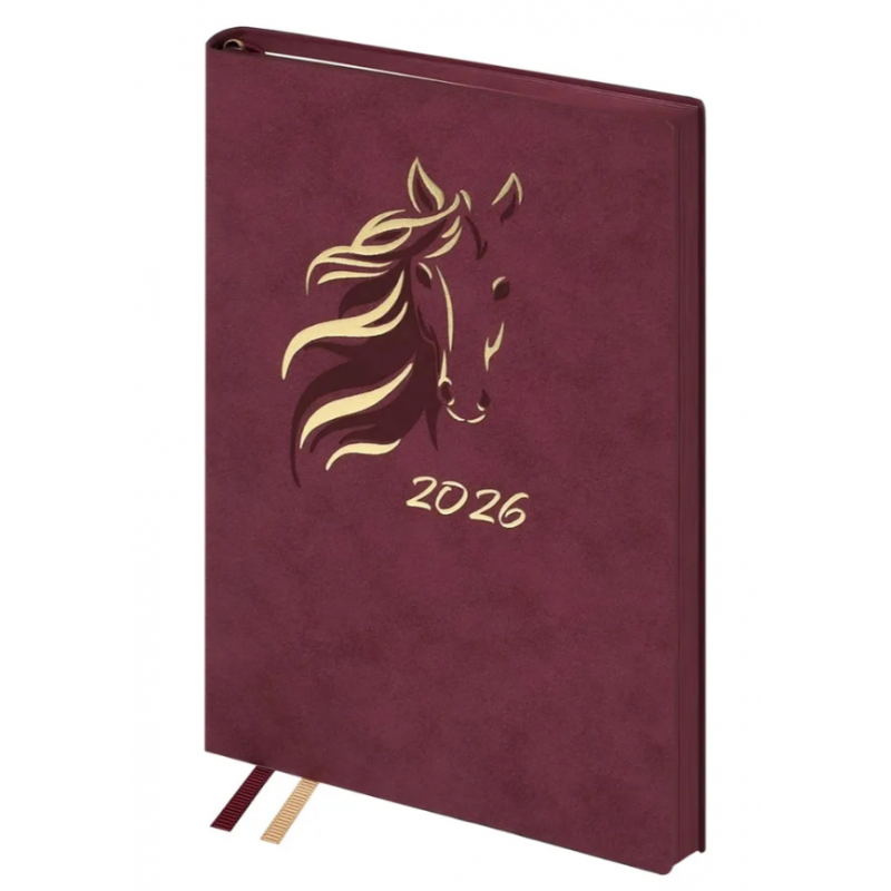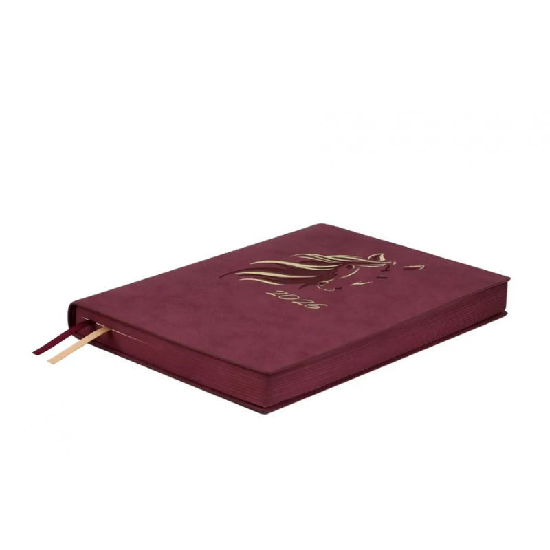 ЕЖЕДНЕВНИК 2026 А5 ESCALADA "ЗАМША" БОРДОВЫЙ С ЦВЕТНЫМ СРЕЗОМ,ТОНИР.БЛОК,КОЖ.ЗАМ.
