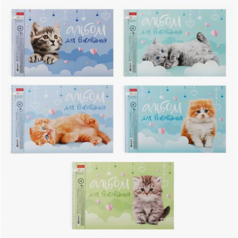 АЛЬБОМ Д/РИС. А4 32Л.СПИРАЛЬ "ПУШИСТЫЕ МОРДОЧКИ" (HATBER) ПЕРФОРАЦ.,АСС-Т