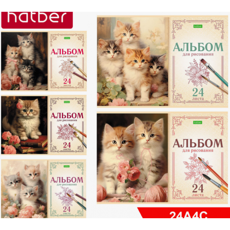 АЛЬБОМ Д/РИС. А4 24Л.СКРЕПКА "НА МЯГКИХ ЛАПКАХ" (HATBER) ОФ/О,АСС-Т
