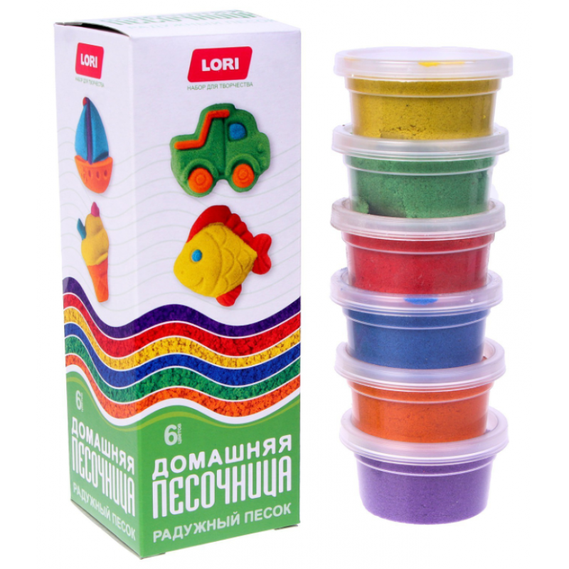 Радужный песок - это разноцветная песчаная масса, в которой песчинки скрепляются между собой при помощи пластичного акрилового клея. Не крошится, не высыхает и не застывает на воздухе, не пачкает руки и одежду, сохраняет эффект «мокрого песка» Позволяет многоразовое использование песка. Лепить фигурки можно как с помощью формочек, так и просто руками. Набор развивает мелкую моторику рук, усидчивость, терпение и аккуратность.