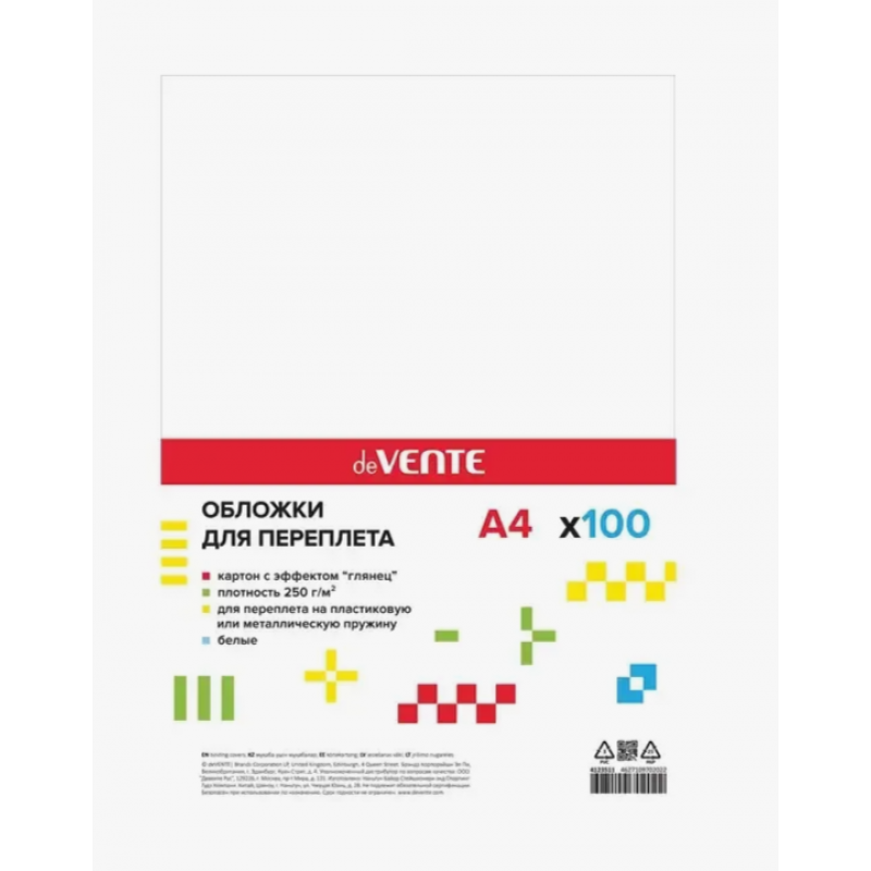 ОБЛОЖКИ ДЛЯ ПЕРЕПЛЁТА А4 КАРТОН ГЛЯНЕЦ БЕЛЫЕ (100ШТ) DEVENTE