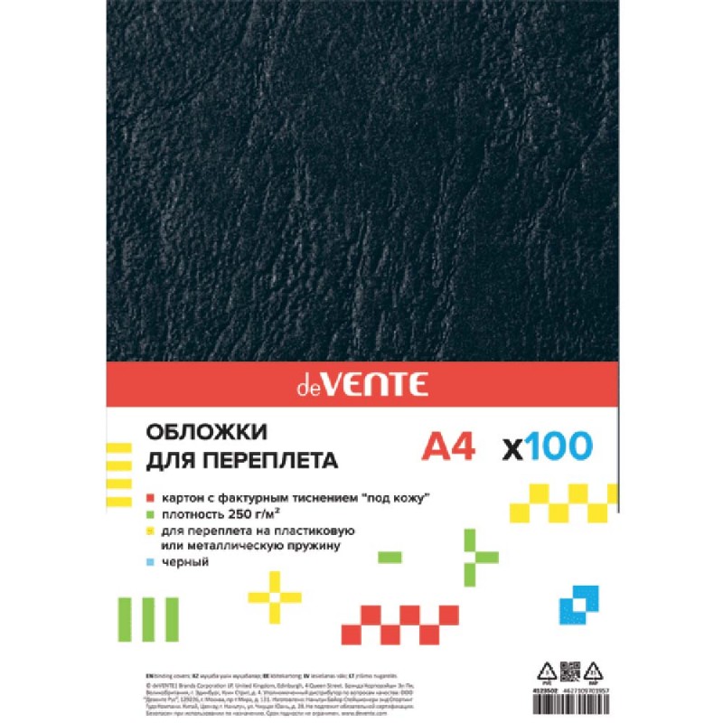 ОБЛОЖКИ ДЛЯ ПЕРЕПЛЁТА А4 КАРТОН ПОД КОЖУ ЧЁРНЫЕ (100ШТ) DEVENTE