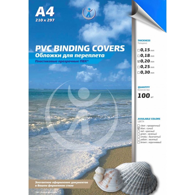 ОБЛОЖКИ ДЛЯ ПЕРЕПЛЁТА А4 ПЛАСТ. 200 МКМ ПРОЗР. СИНИЕ (100ШТ)