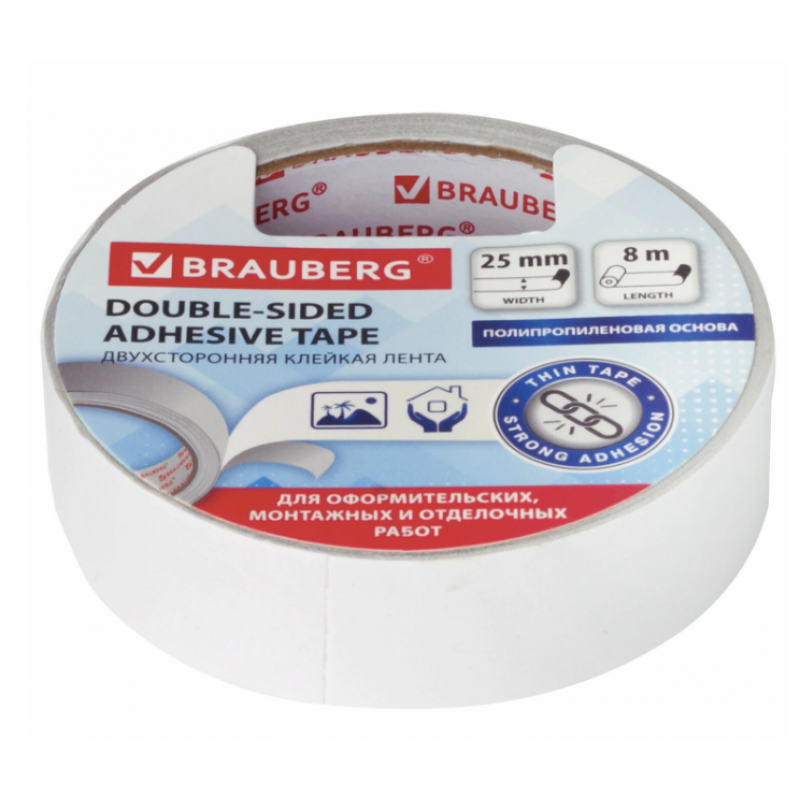 КЛЕЙКАЯ ЛЕНТА 2-Х СТОР.25ММх8М ПРОП. ПРОЗРАЧНАЯ ОСНОВА
