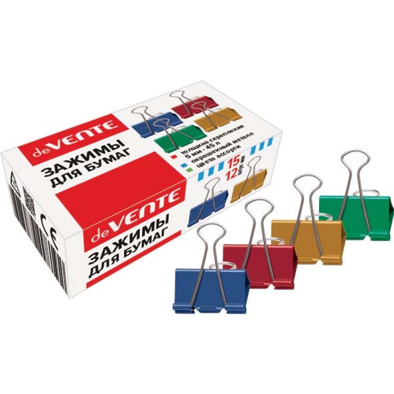 ЗАЖИМ ДЛЯ БУМАГ ЦВЕТНОЙ 15ММ 12ШТ DEVENTE