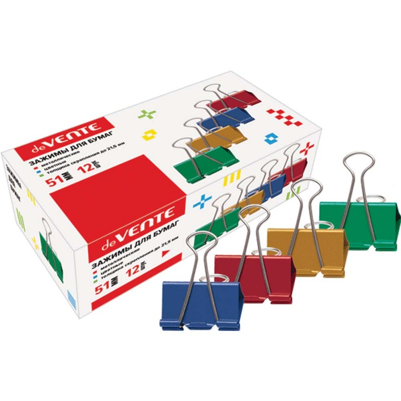 ЗАЖИМ ДЛЯ БУМАГ ЦВЕТНОЙ 51ММ 12ШТ DEVENTE