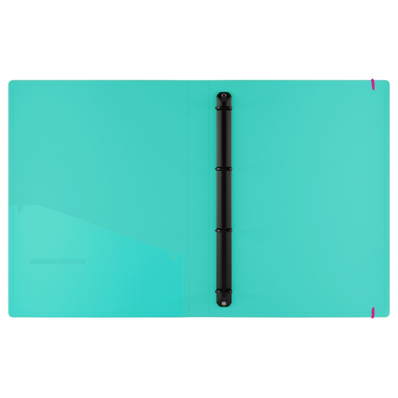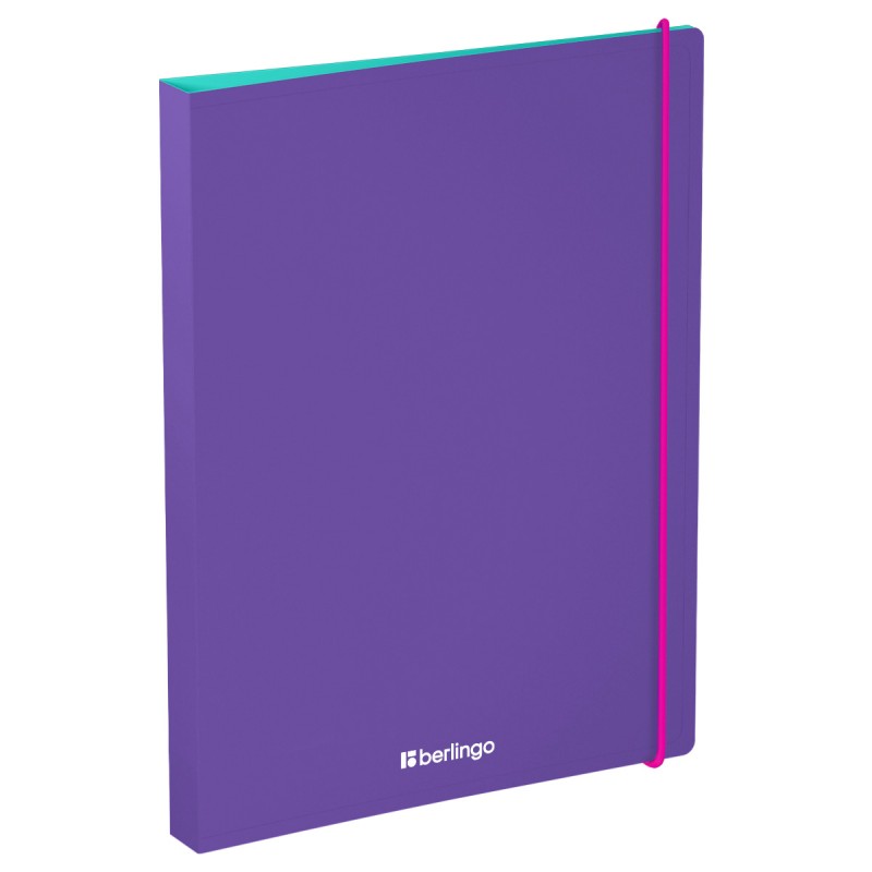 Папка на 4 кольцах Berlingo серии Raze формата А4 (310*250*24 мм) – отличный и стильный помощник для хранения документов. Яркий фиолетовый цвет плотной обложки толщиной 600 мкм сочетается с контрастным бирюзовым цветом внутренней поверхности. Цветная резинка-фиксатор предназначена для удобного и надежного хранения папки в сложенном виде. Папка изготовлена из высококачественного полипропилена с особой фактурой и эффектом soft-touch.