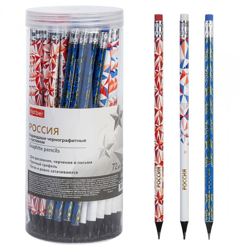 КАРАНДАШ С РЕЗИНКОЙ HATBER "РОССИЯ" HB КРУГЛЫЙ АСС-Т