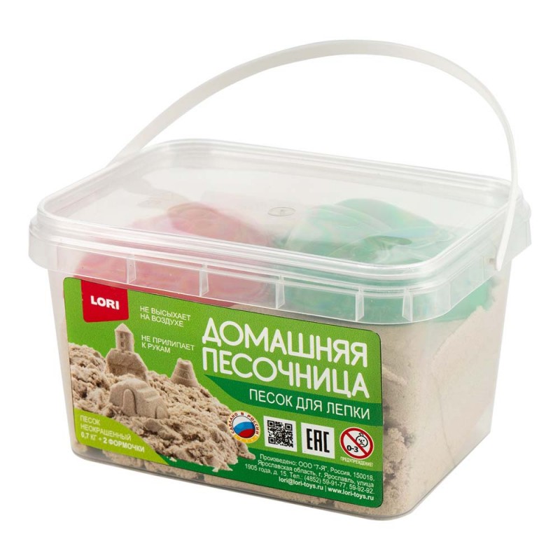 НАБОР Д/ТВОРЧ. "РАДУЖНЫЙ ПЕСОК" 700Г НЕОКРАШЕННЫЙ + 2 ФОРМОЧКИ